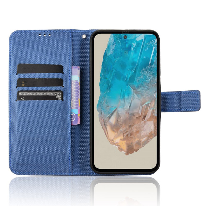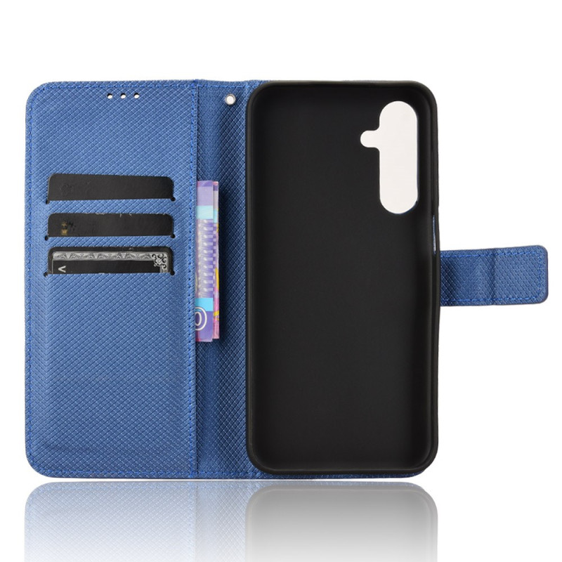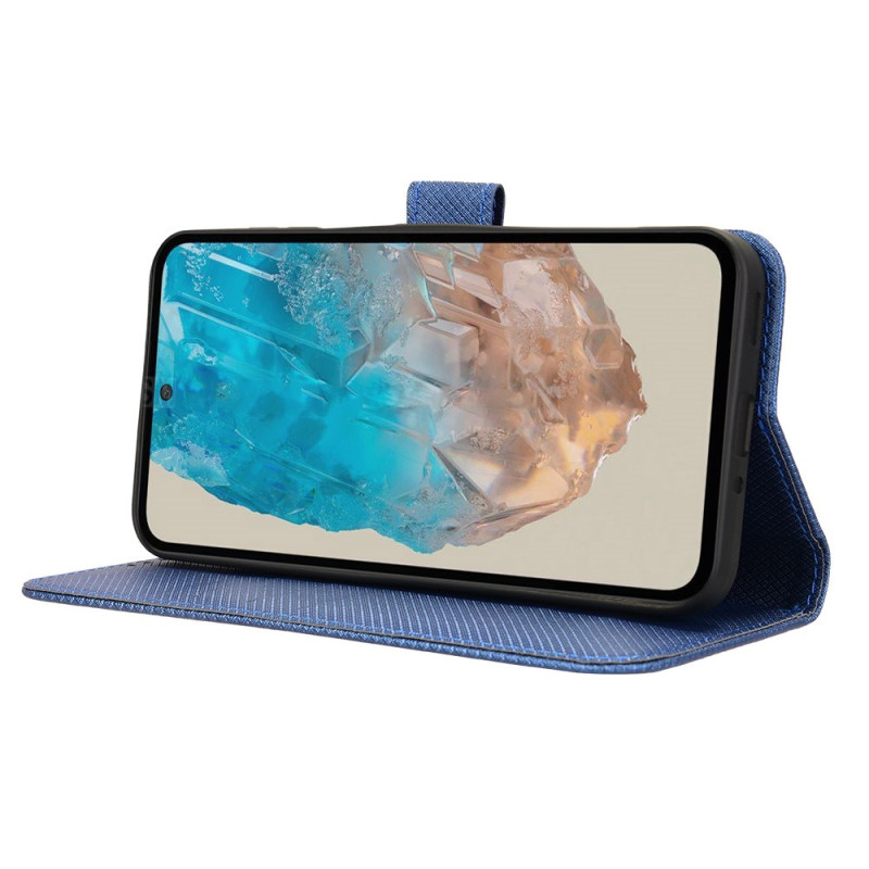 Discover our elegant diamond textured PU leather case for the Samsung Galaxy M35 5G. Combining style and functionality, it offers complete protection with card slots, a ticket pocket, a magnetic clasp and a foldable stand.