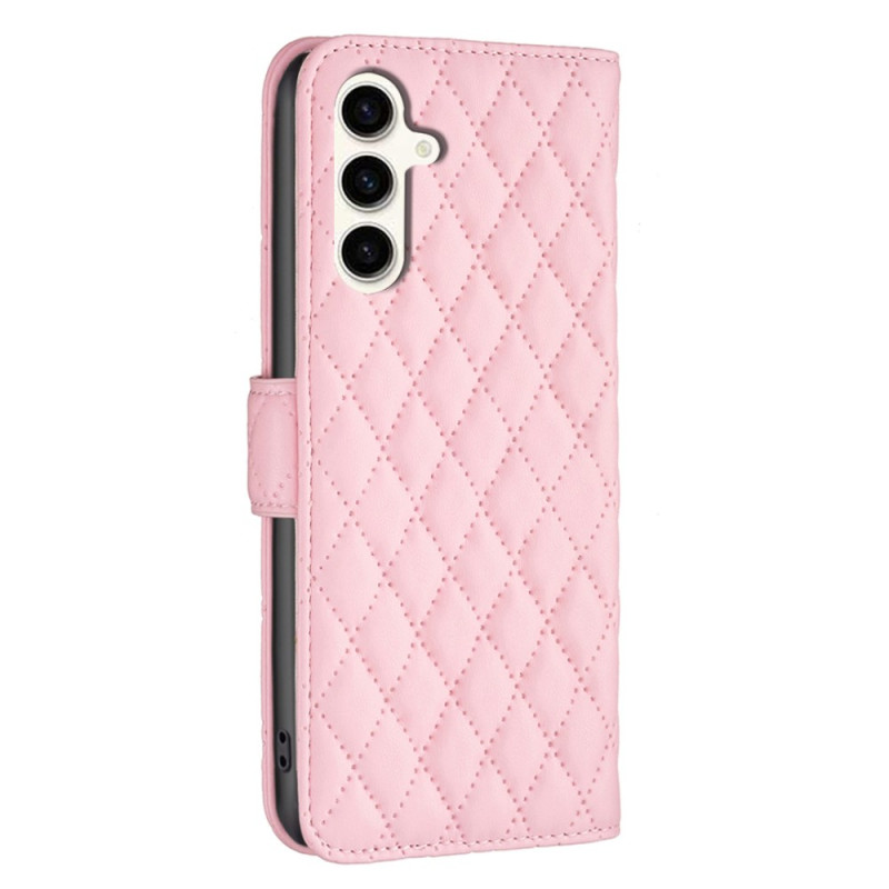 Discover our elegant leather case for Samsung Galaxy M35 5G. Combining style and functionality, it offers complete protection with its diamond grid design, card slots, note compartment and stand function.