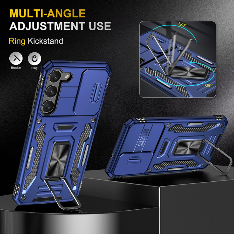 A case for the Samsung Galaxy S23 Plus 5G with a sliding camera cover and hands-free support.
