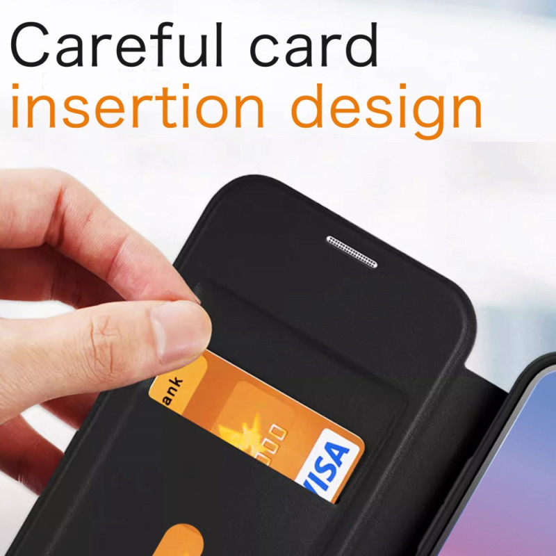 Découvrez notre flip cover anti-rayures pour Samsung Galaxy S24 5G et munie d'un porte-carte intérieur.