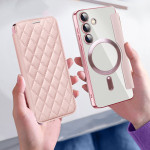 Cette flip cover pour Samsung Galaxy S24 Plus 5G est dotée d'un porte-cartes intégré et offre une protection antichoc.