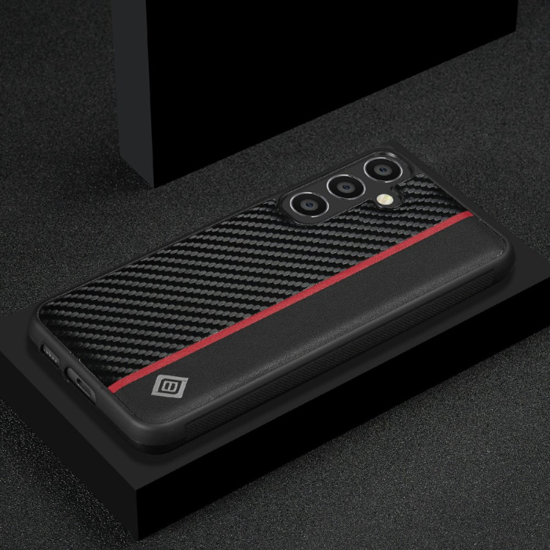 Protégez votre Samsung Galaxy S26 avec élégance grâce à cette coque haut de gamme au design fibre de carbone. Structure antichoc renforcée, finitions luxueuses avec logo en alliage d'aluminium et bande rouge distinctive. Protection intégrale avec rebords surélevés pour l'écran et la caméra.