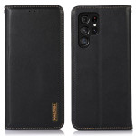 2-in-1 wallet case in genuine cowhide with Nappa texture for Samsung Galaxy S26 Ultra. Enjoy complete protection with RFID technology, integrated holder and secure magnetic closure for your cards and phone.