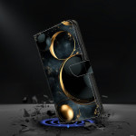 Protégez votre Samsung Galaxy S26 Ultra avec élégance grâce à cet étui portefeuille à rabat au motif d'anneaux dorés luxueux. Doté d'un support pliable ajustable, de 2 emplacements pour cartes et d'une fermeture magnétique sécurisée...