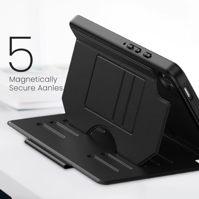 • L'étui dispose d'un support réglable à 5 niveaux, offrant des angles de vision polyvalents pour la frappe, la lecture ou le visionnage de vidéos, améliorant votre productivité et votre confort.