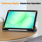 Integrated tri-fold support, practical pen holder and automatic alarm clock for an everyday experience.