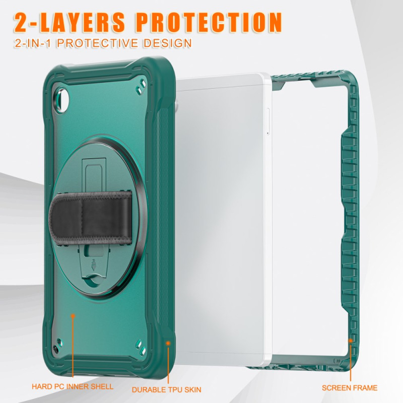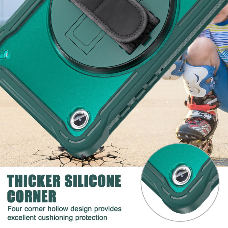 This case for the Samsung Galaxy Tab A9 tablet is designed with a 360-degree rotating stand and a hand strap.