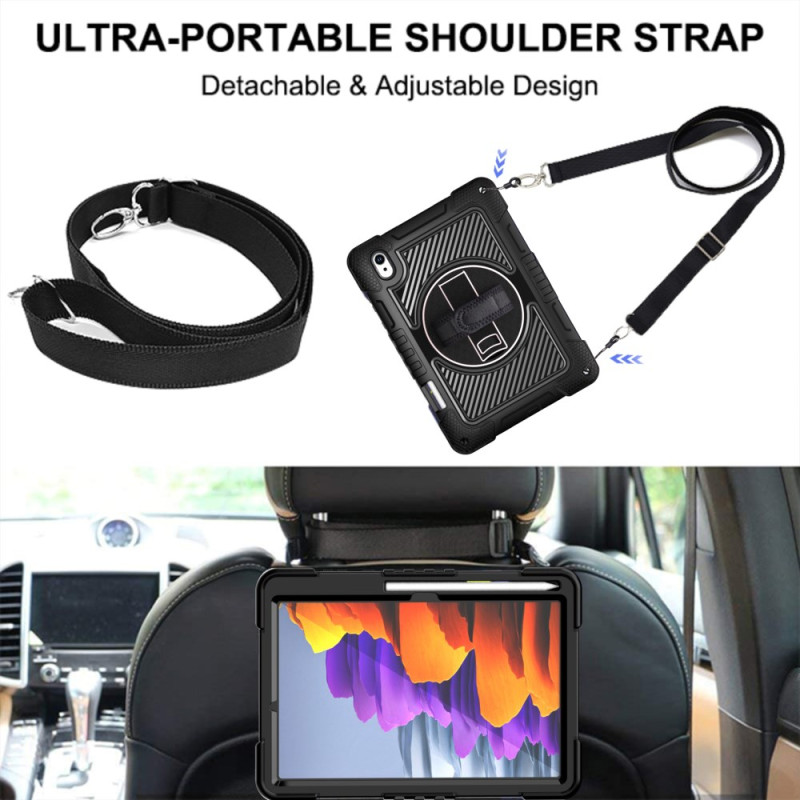 Discover our robust and versatile case for the Samsung Galaxy Tab S11. Made from non-toxic silicone and PC, it offers optimum protection against knocks and drops. Its 360-degree rotating stand and adjustable hand strap ensure maximum comfort of use.