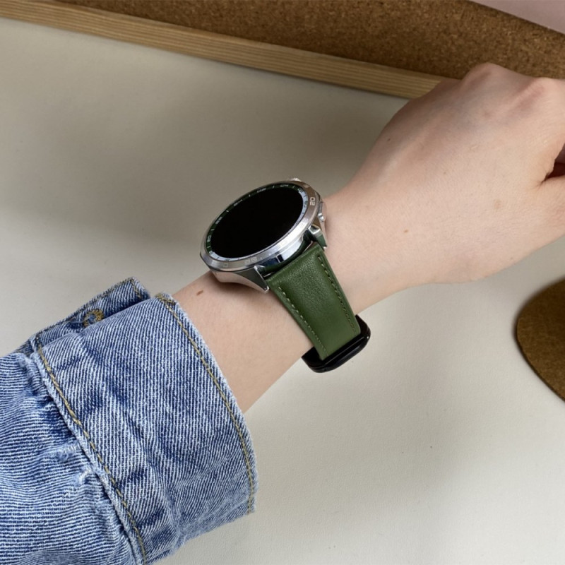 Discover our elegant and comfortable genuine leather watch strap. With its practical magnetic buckle, it fits many connected watches.