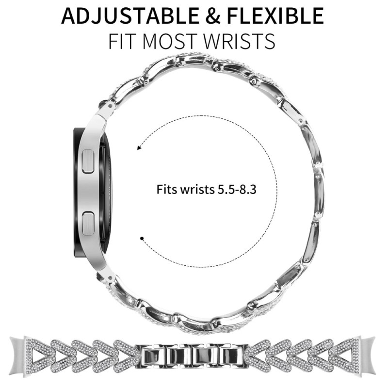 Discover our elegant watch strap for Samsung Galaxy Watch6. Made from high-quality zinc alloy with rhinestones, it combines durability with a sparkling finish.