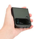 Protect your Samsung Galaxy Z Flip 4 with this superb carbon fibre-textured leather-effect case.