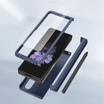 The whole phone is protected by plastic, a tempered glass screen and a removable hinge.