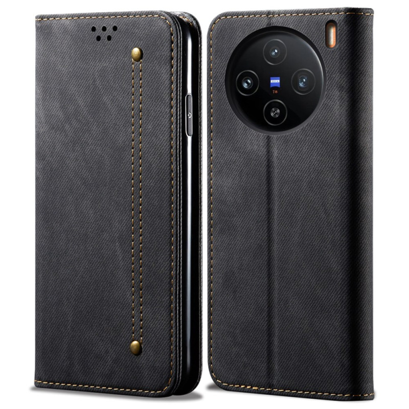 Skydda din Vivo X100 Pro 5G med stil med detta plånboksfodral i PU-läder med jeanstextur. Raffinerad retrodesign, integrerat visningsstativ, säker magnetisk stängning och fullt fallskydd.