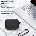 Komplett kit med 8 tillbehör för att skydda och optimera dina AirPods Pro 3. Innehåller silikonskal med krok, antiförlustrem, klockögla, öronkrokar, handledsrem, rengöringsborste och förvaringsväska.