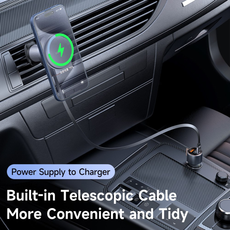 15W magnetisk trådlös laddare med inbyggd 1 m utdragbar USB-C-kabel. Kompatibel med iPhone 12-15 och Samsung. Dubbel magnetisk spole för stabil fastsättning på luftventiler. 15W snabbladdning med fullt skydd och CE, FCC och andra certifieringar...