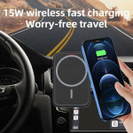 2-i-1 magnetiskt bilfäste med snabb trådlös laddare på upp till 15 W. Fäster säkert på luftventilen och roterar 360° för optimal betraktningsvinkel. Perfekt för GPS-navigering och samtal under körning.