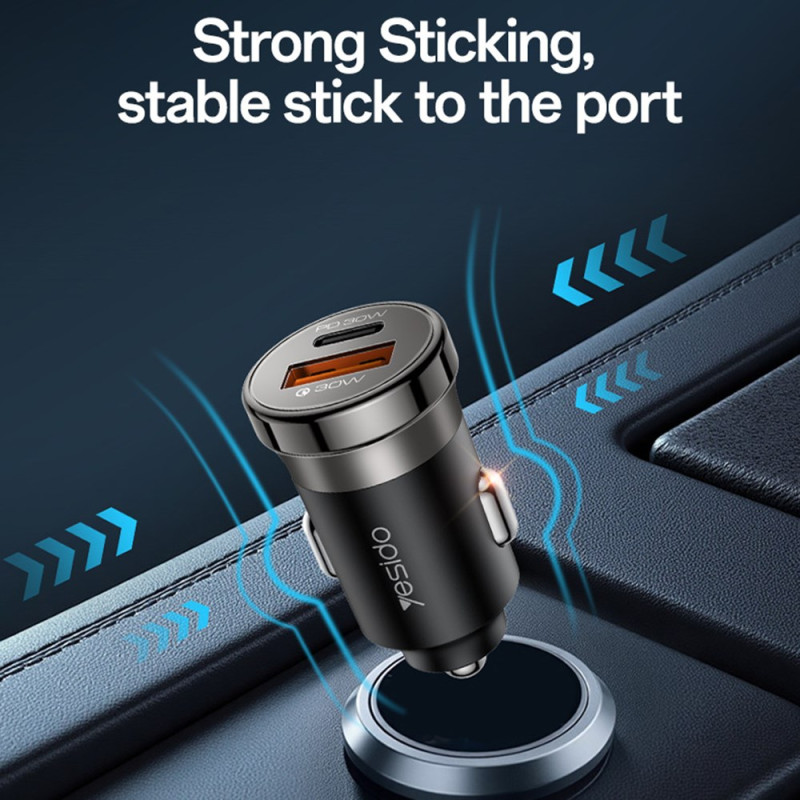 Rechargez rapidement vos appareils en déplacement avec le chargeur YESIDO. Équipé de deux ports (USB-A et USB-C) offrant jusqu'à 30W de puissance, il supporte les protocoles de charge rapide PD, QC, AFC et FCP. Compatible avec tous les véhicules 12V et 24V.