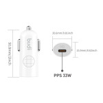 Ladda dina enheter snabbt under resan med denna kompakta 33 W billaddare. Inkluderar en 1,2 m USB-C till USB-C-kabel för omedelbar användning. Kompatibel med flera enheter tack vare dess spänningsutgångar.