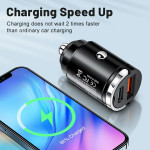 Ultrasnabb 30 W billaddare med dubbel USB-port och Type-C PD. Utnyttja QC3.0-tekniken för snabbladdning av dina enheter. Kompakt design med praktisk borttagningsring och smart chip.