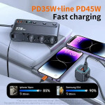 228W 9-i-1 multifunktionell billaddare med cigarettändare, PD- och USB-portar. Digital display som visar batterispänningen för säker körning. Halkskyddade clips för ett stabilt grepp. Kompatibel med snabbladdningsprotokollen Apple PD, QC3.0, Samsung AFC och Huawei FCP...