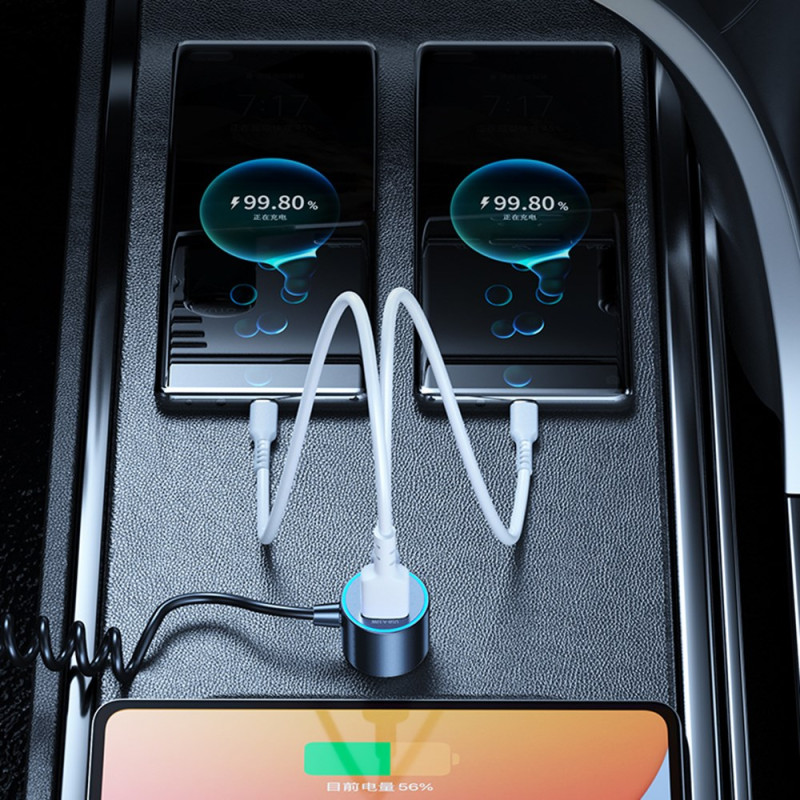 Njut av ultrasnabb 66 W-laddning på resande fot med denna smarta billaddare. Med en integrerad 1,5 m utdragbar typ C-kabel, flera USB-A- och USB-C-portar och avancerat skydd för dina enheter. Kompatibel med alla fordon.