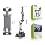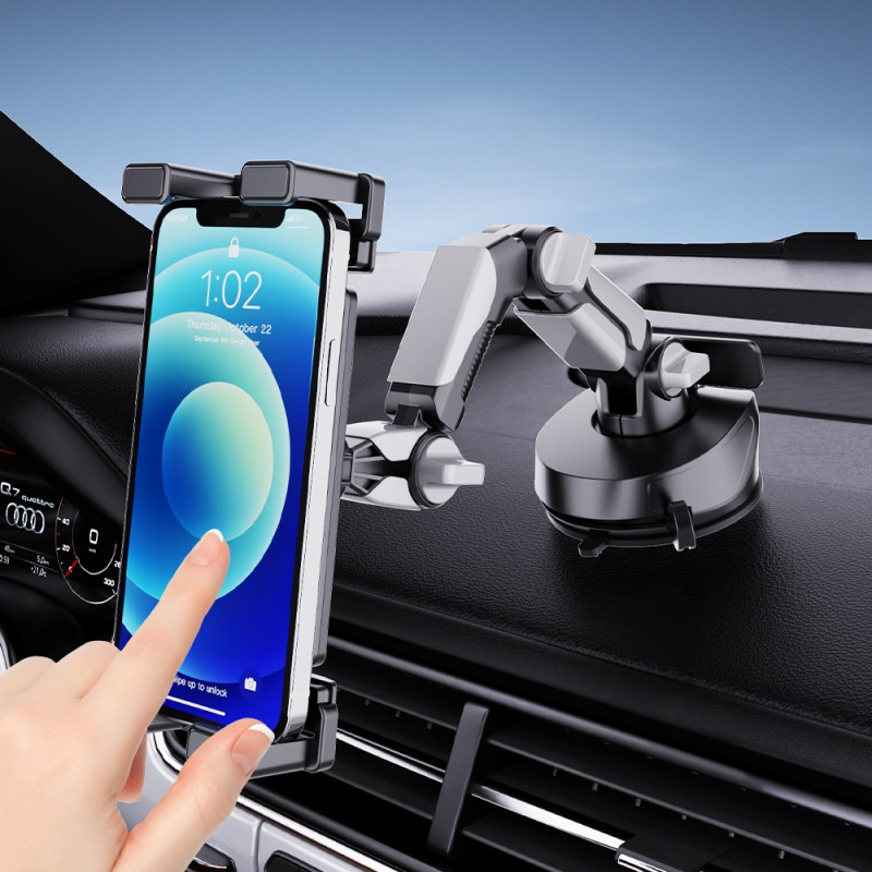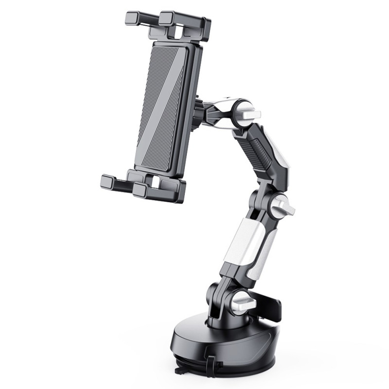 X257 universalstativ med kraftfull sugpropp och ledad arm för telefoner och surfplattor. 360° rotation för optimal användning i stående eller liggande läge. Kompatibel med enheter från 145-225 mm. Perfekt för GPS-navigering, handsfree-samtal och säker underhållning när du är på resande fot.