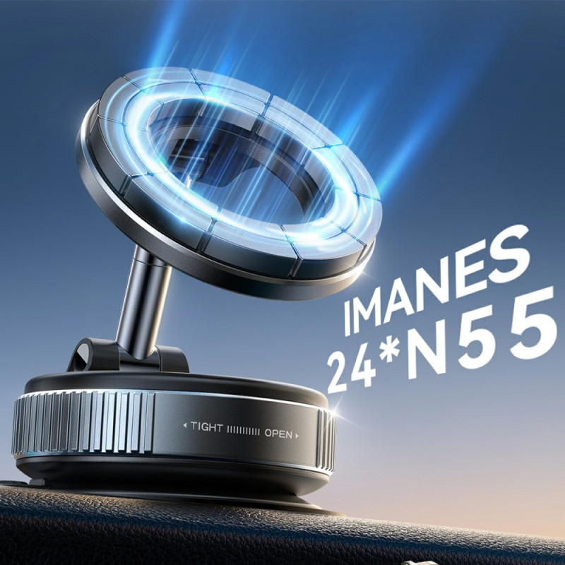 Innovativ MagSafe-kompatibel magnetisk hållare med ultrakraftig sugkopp. Vikbar och roterande design för perfekt justering av betraktningsvinkeln. Omedelbar installation på 1 sekund. Idealisk för säker körning med GPS-navigering.