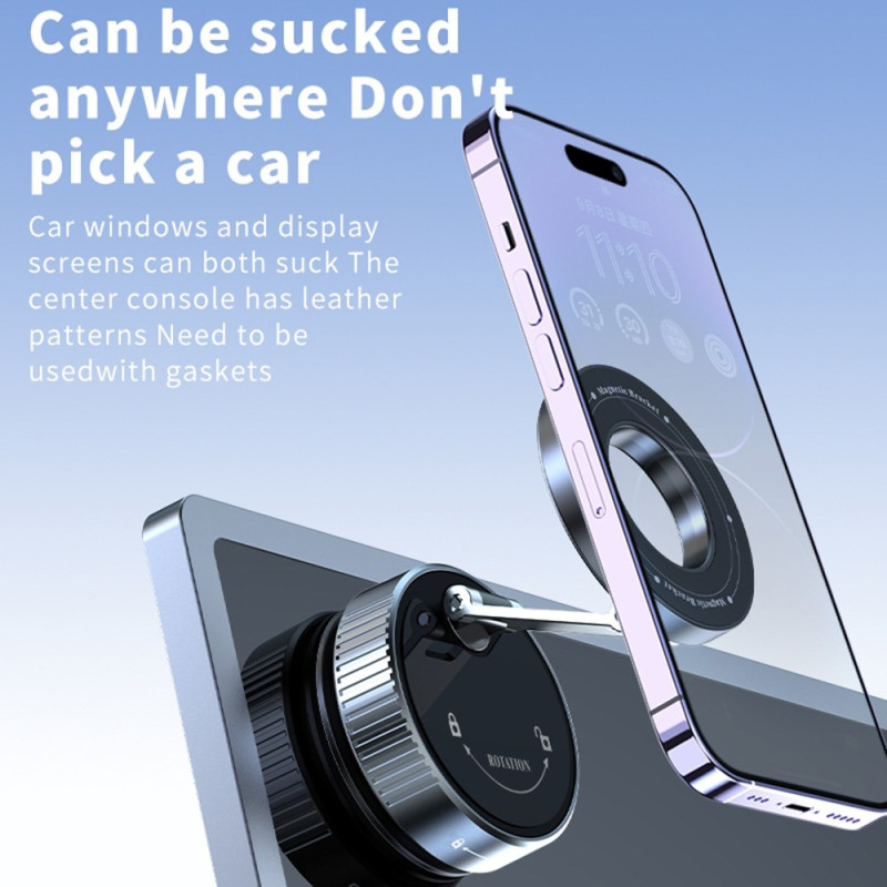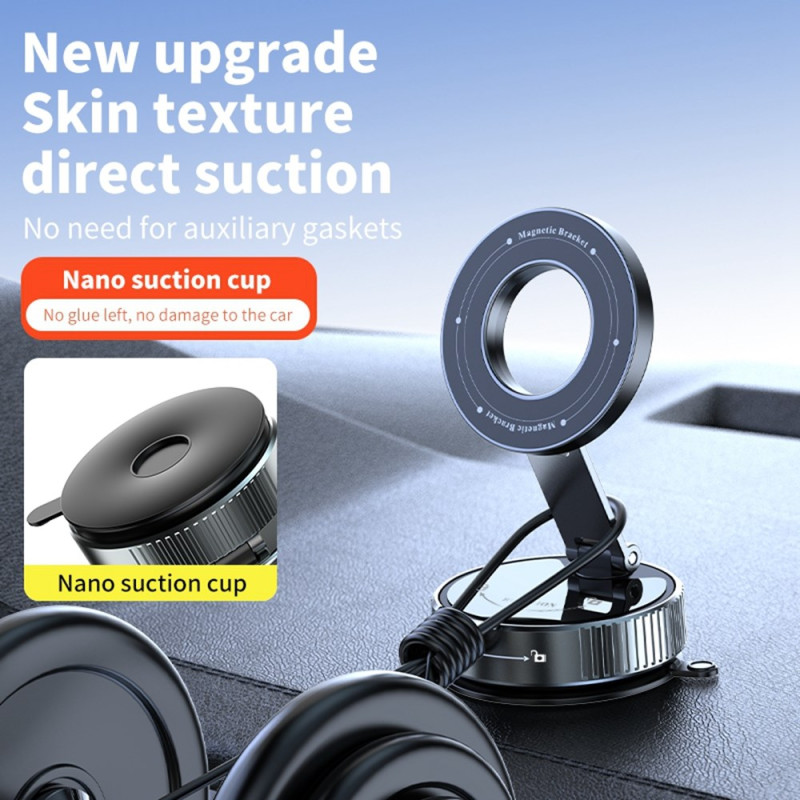 Universellt magnetiskt bilfäste med ultrafast sugkopp och 360° rotation. Njut av optimal navigering tack vare den justerbara armen och den kraftfulla magnetiska attraktionen på 20N. Enkel installation utan verktyg, kompatibel med alla smartphones som är utrustade med magnetisk trådlös laddning.