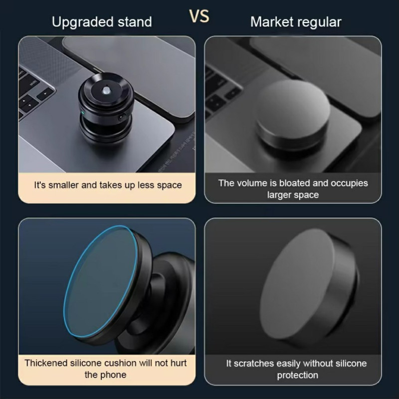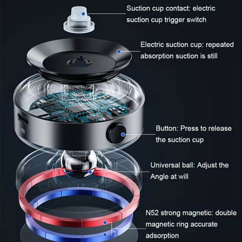 Denna magnetiska telefonhållare ger en mycket säker fastsättning tack vare ett system som kombinerar 16 kraftfulla magneter och dubbel magnet- och vakuumsugningsteknik. Dess 360° rotation gör det enkelt att justera betraktningsvinkeln för säker och bekväm körning. Den är tillverkad av zinklegering och högkvalitativ plast och kombinerar robusthet och elegans för att smälta in harmoniskt i fordonets interiör. Den är kompatibel med alla smartphones från 4 till 6,5 tum och kan även fästas på andra släta ytor, t.ex. ett skrivbord eller en sportutrustning.