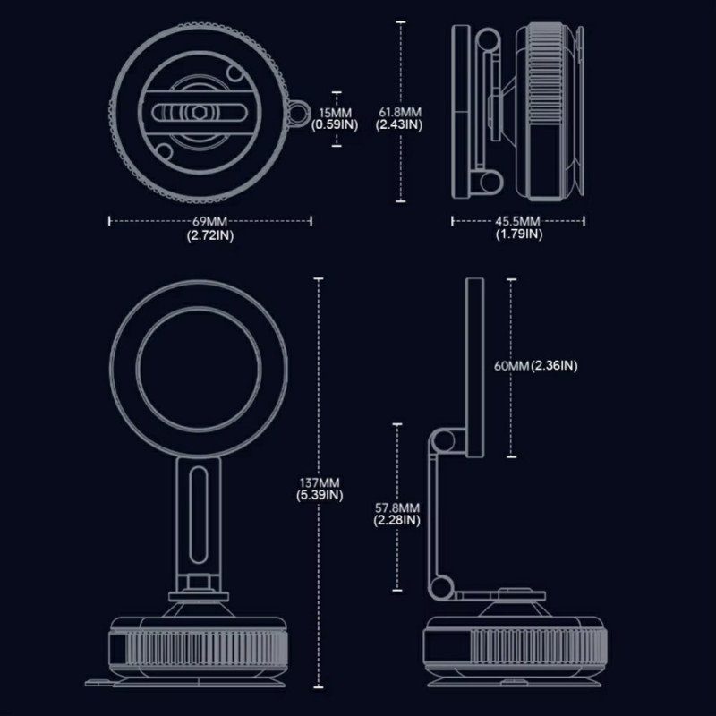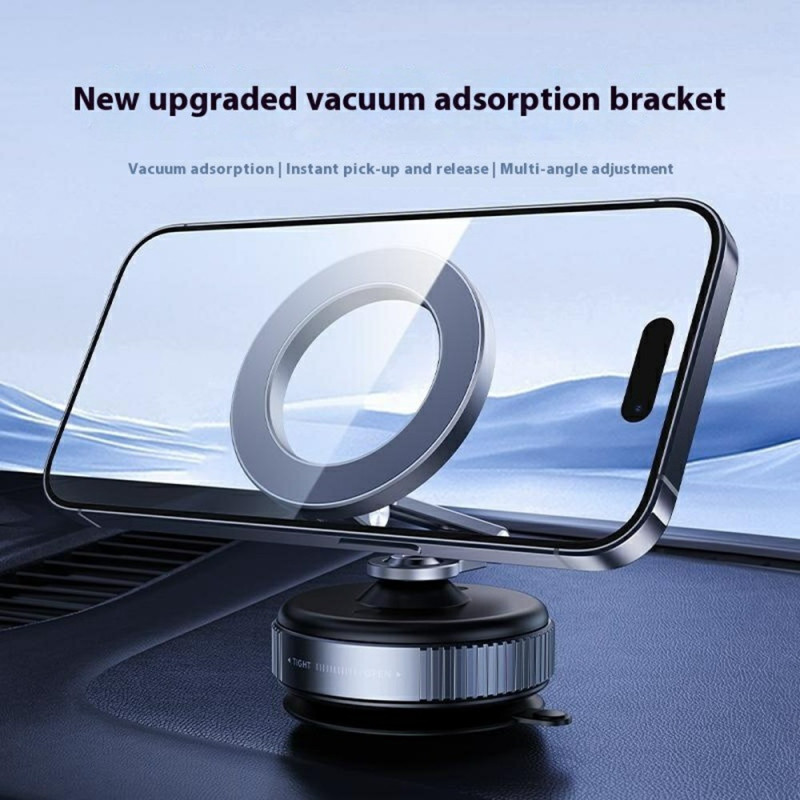 Den magnetiska biltelefonhållaren erbjuder ultrasäker fastsättning och maximal flexibilitet för säkrare körning. Den är utrustad med 16 kraftfulla magneter och ett dubbelt vakuumsugsystem som ger ett perfekt grepp på instrumentbrädan eller vindrutan, även på ojämna vägar. Dess 360° rotation gör det enkelt att justera betraktningsvinkeln i stående eller liggande läge. Den är tillverkad av en lätt och hållbar aluminium med halkfria silikonplattor och håller alla smartphones från 4,7 tum stadigt utan risk för repor.