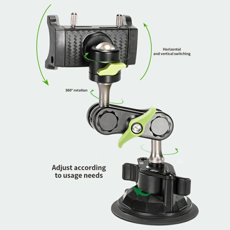 LANPARTE UBA-01L bilfäste med sugkopp ger ett stabilt och mångsidigt fäste för dina smartphones och kameror, perfekt för bilkörning, vlogging eller filmning i bilen. Den 37 cm förlängningsbara armen gör att du fritt kan justera enhetens position och vinkel för perfekt inramning. Den är tillverkad av aluminium, ABS och silikon och kombinerar styrka, flexibilitet och hållbarhet. Den kraftfulla sugkoppen ger ett säkert grepp på instrumentbrädan eller vindrutan. Den är kompatibel med de flesta fordon och enheter och är den perfekta följeslagaren för att fånga dina resor i full säkerhet.