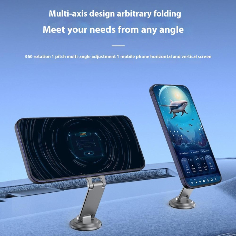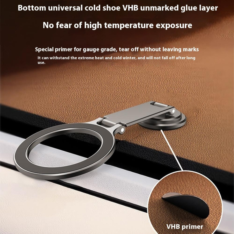 Denna vikbara magnetiska iPhone-hållare ger ett pålitligt och snyggt grepp för användning i bilen. Den är kompatibel med iPhone 12 till 16-serien tack vare direkt MagSafe-fäste eller via ett magnetiskt skal, och kan även användas för andra smartphones med den medföljande magnetringen. Den mekaniska legeringsarmen ger ett stadigt grepp utan att hänga, medan de dubbla roterande axlarna möjliggör exakt justering av betraktningsvinkeln. Den är vikbar och diskret och tar upp minimalt med utrymme. Den återanvändbara självhäftande basen ger ett stadigt grepp utan att lämna några märken.