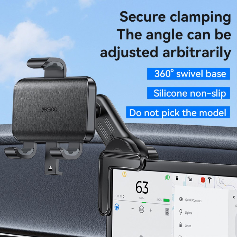 YESIDO telefonfäste med flytande skärmklämma erbjuder en stabil, praktisk och snygg lösning för att hålla din smartphone perfekt synlig under alla omständigheter. Det är utformat för skärmar med en tjocklek på upp till 2,7 cm och ger ett säkert grepp tack vare det dubbelförstärkta systemet som kombinerar tvättbart lim och ett klämhjul. Med den 360° roterande armen kan du justera betraktningsvinkeln efter dina behov, oavsett om du arbetar, följer en handledning eller tittar på en video. Den är kompatibel med telefoner som är upp till 90 mm breda och är tillverkad av ABS med en PU-läderstruktur för ett förstklassigt och hållbart utseende.