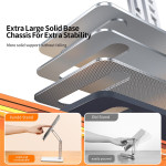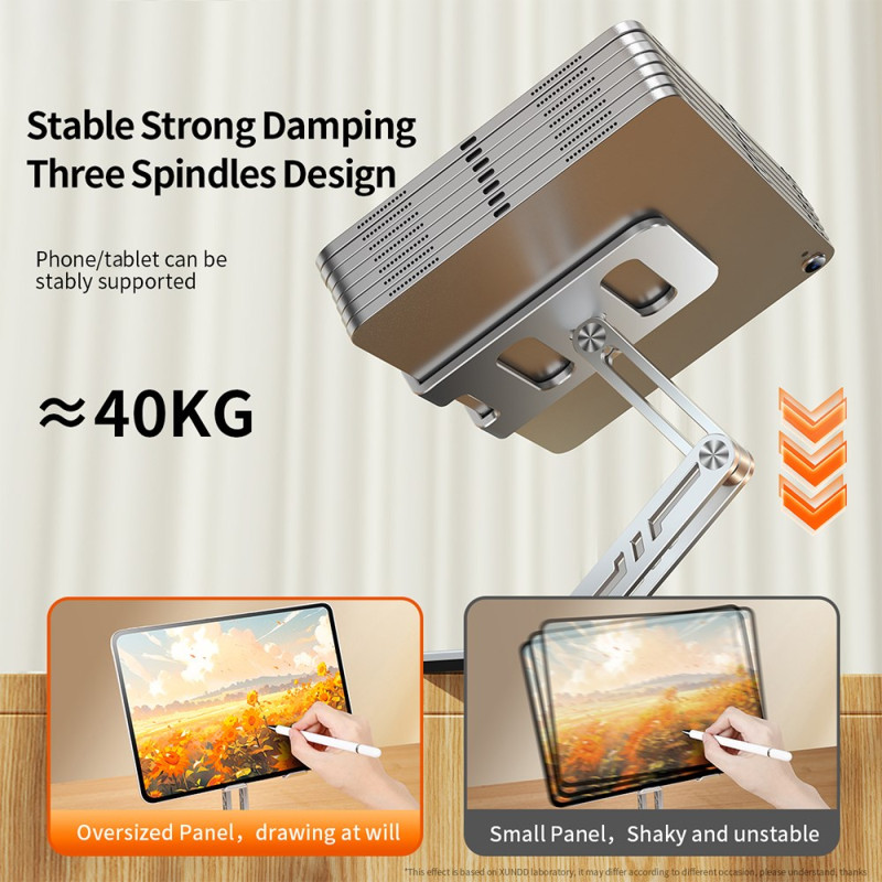 Det justerbara skrivbordsstativet XUNDD erbjuder exceptionell stabilitet tack vare sin design med aluminium , kolstål och halkfria silikonmattor. Det kraftiga treaxliga systemet ger smidig och exakt justering samtidigt som det stöder upp till 40 kg, vilket gör det idealiskt för tunga skärmar och enheter. Den extra breda basen säkerställer en perfekt passform utan risk för att tippa över. Utformad för att optimera ventilationen, vilket främjar värmeavledning vid långvarig användning. Den är vikbar och bärbar och kan användas för alla ändamål: spel, arbete, video, ritning, inlärning och mycket mer.