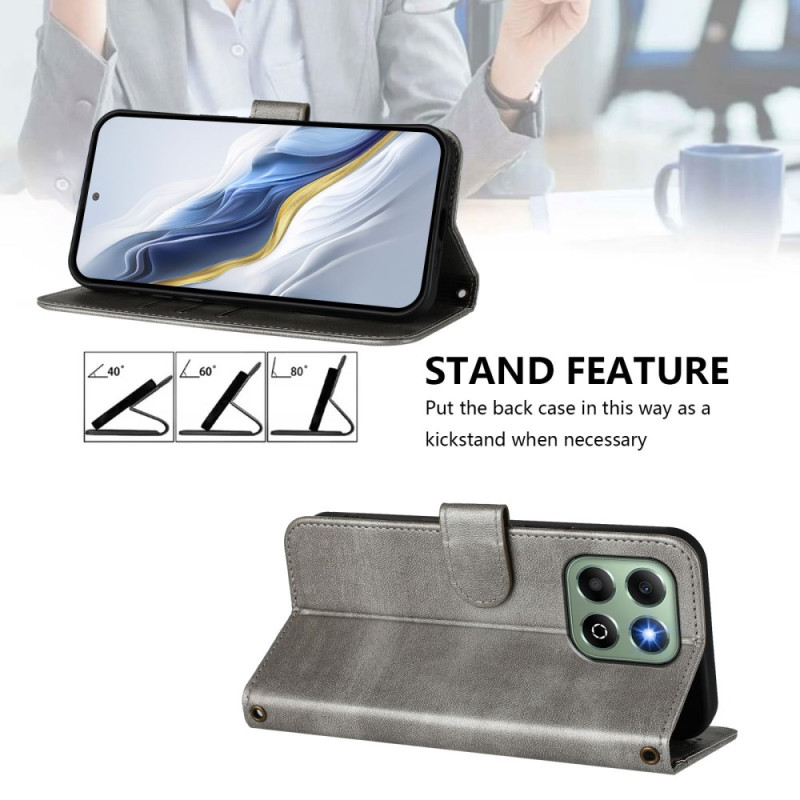 Protégez votre Honor X6b 4G avec élégance grâce à cet étui portefeuille en cuir PU texture rétro. Doté de multiples fentes pour cartes, d'un support ajustable et d'une dragonne pratique, il combine style et fonctionnalité pour une protection complète.