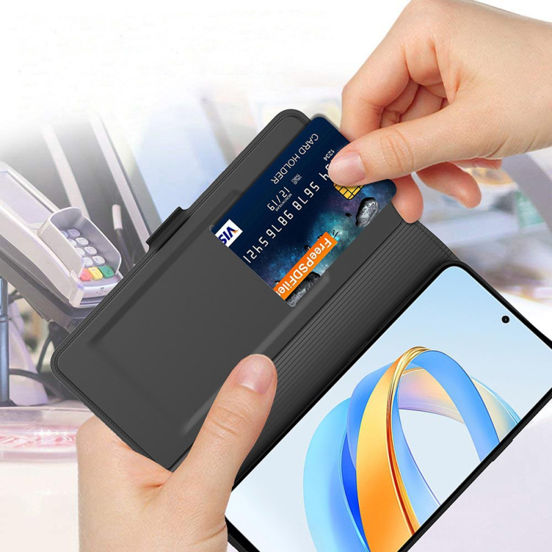 Skydda din Honor X6b 4G med stil med detta multifunktionsfodral i PU-läder och TPU. Med integrerade kortfack, en justerbar stativfunktion och en säker magnetisk stängning kombinerar det stil och funktionalitet för daglig användning.