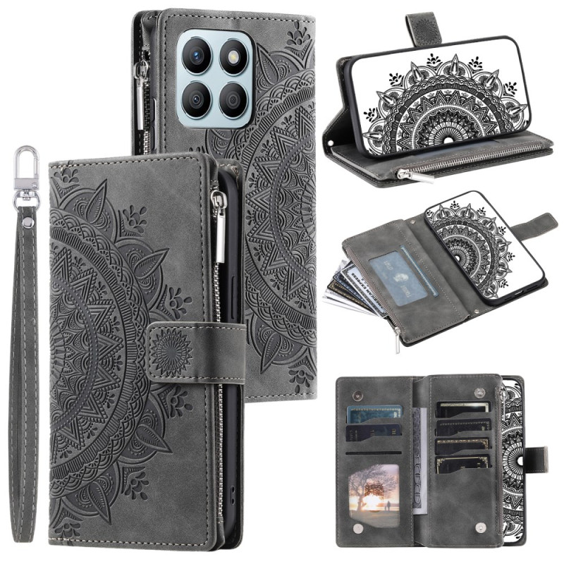 Elegant plånboksfodral för Honor X6b 4G med sofistikerat mandalamotiv. Kombinerar stil och funktionalitet med flera fack för kort och kontanter, en säker magnetisk stängning och integrerat handsfree-stöd.