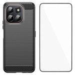 Skydda din Honor X6c 4G med detta eleganta TPU-fodral och den medföljande härdade glasfilmen. Texturerad design med borstad effekt och kolfiber för en modern, sportig look. Komplett skydd med upphöjda kanter för skärm och kamera.