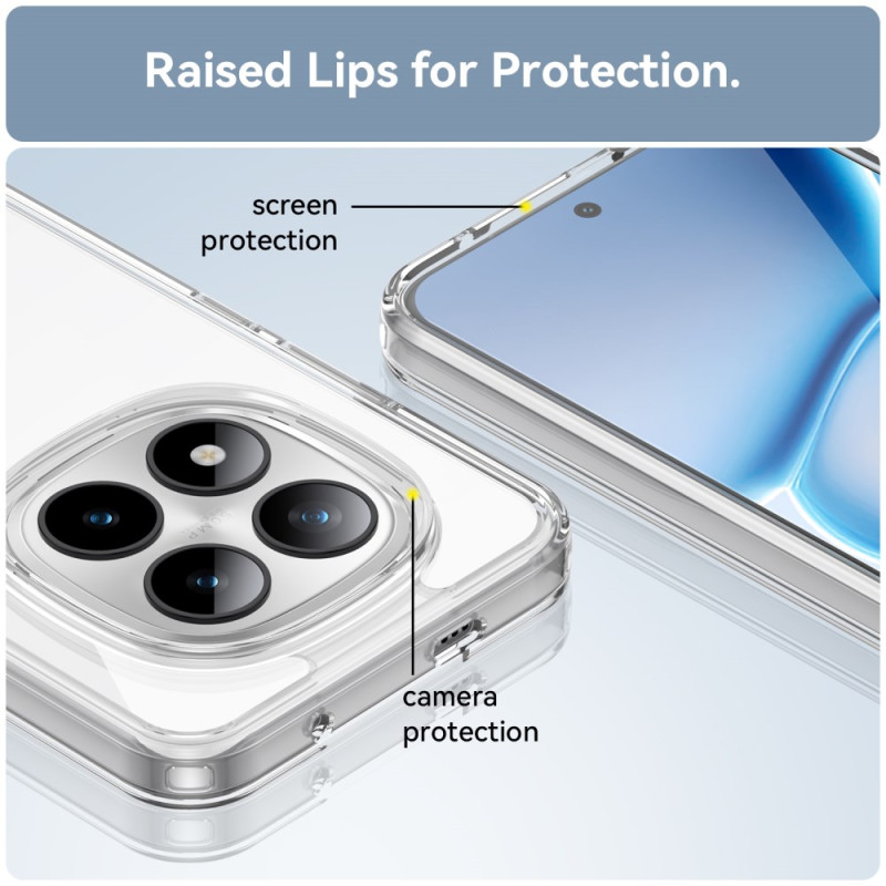 Protection complète et élégante pour votre Xiaomi Redmi Note 15 Pro Plus 5G / Poco M8 Pro 5G. Cette coque transparente combine robustesse et design minimaliste avec coussins d'air anti-choc, bords surélevés protégeant l'écran et la caméra, et film en verre trempé HD inclus. Parfaite pour préserver l'esthétique d'origine de votre téléphone.