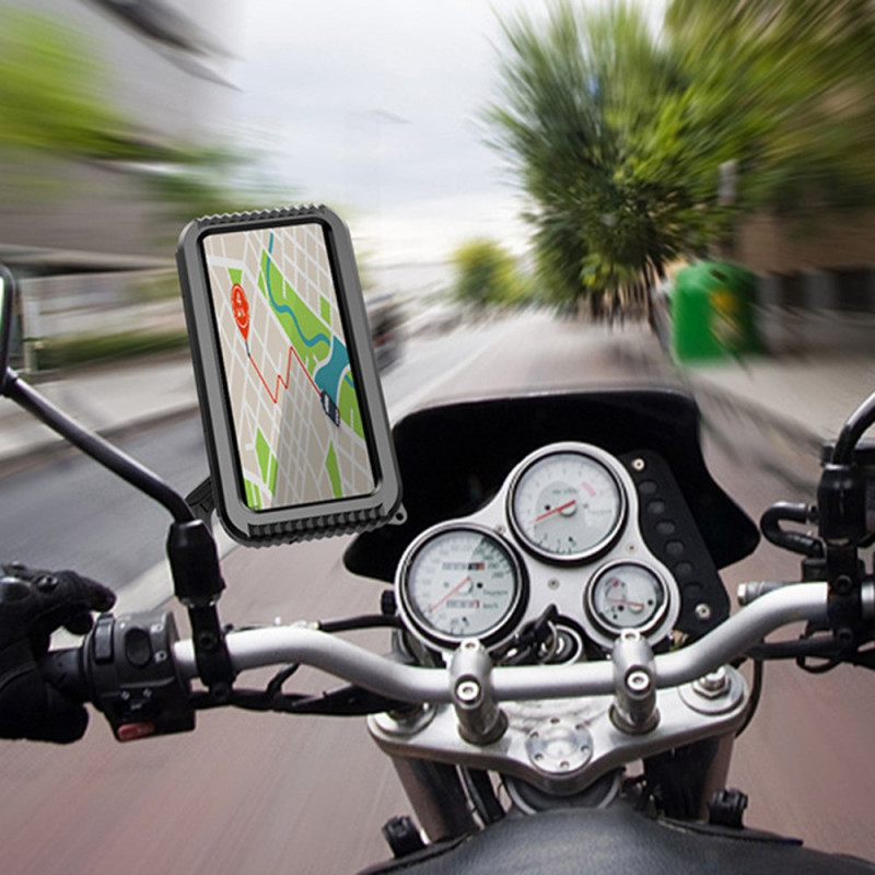 Din sinnesfrid är garanterad. Oavsett väder och hastighet skyddar det här fästet din smartphone helt och hållet från väder och vind. Det är utformat för att fästas säkert på backspegeln (motorcykel, elcykel) och eliminerar risken för att den tappas eller går sönder. Det värmebeständiga höljet i ABS och nano-PU ger ett hållbart, vattentät skydd mot vatten, snö och damm. Stativet är universellt och rymmer telefoner från 4,0 till 7,0 tum. Dess design gör att det går snabbt och enkelt att installera för omedelbar användning.