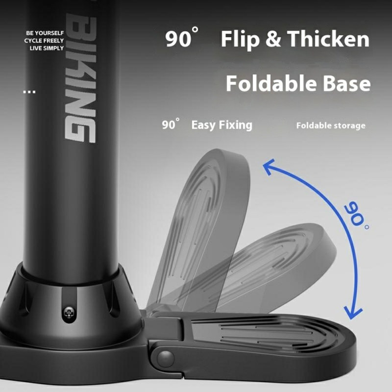 Pumpen är konstruerad för maximal effektivitet vid pumpning och är baserad på en höghållfast stålkonstruktion. Den klarar tryck på upp till 120 PSI, vilket gör den idealisk för däck som kräver högt tryck (landsvägscyklar). Pumpens mångsidighet säkerställs av dess universella kompatibilitet med Presta-, Schrader- och Dunlop-ventiler, vilket täcker alla typer av cyklar, motorcyklar och elfordon. Handtaget är avtagbart, vilket optimerar förvaringen och underlättar pumprörelsen. Denna enhet är en oumbärlig assistent för underhåll i hemmet och på resan.