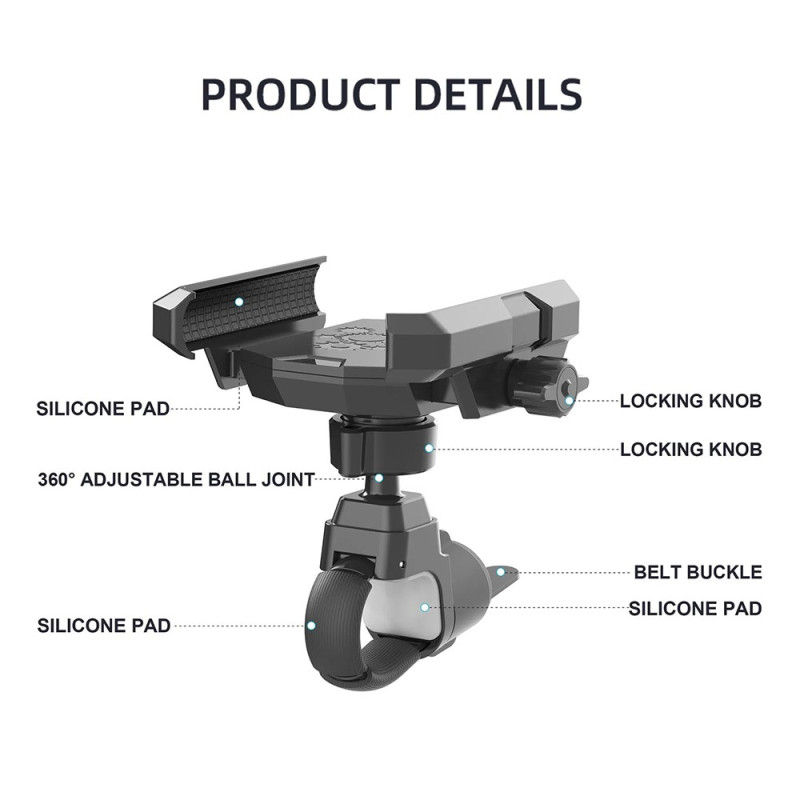 De l'équipement de sport à la mobilité quotidienne, la polyvalence de cette fixation s'étend à un large éventail d'applications. Fabriqué à partir de matériau ABS de haute qualité, ce support assure une fiabilité et une durabilité à long terme dans toutes les conditions extérieures. Le dispositif est équipé de patins en silicone pour amortir efficacement les chocs et sécuriser le téléphone sans le rayer. La rotule intégrée permet une rotation de 360 degrés, offrant une flexibilité maximale pour ajuster l'angle de vue. Son installation est rapide et aisée, le rendant pratique pour un usage quotidien sur vélo, moto ou poussette.