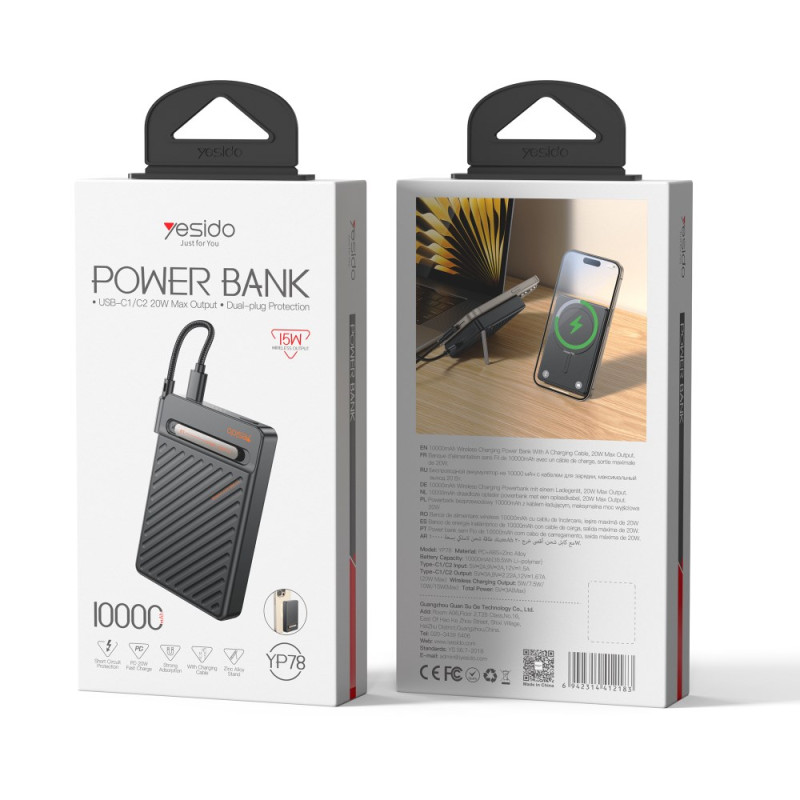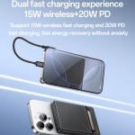 Total eliminering av laddningsångest säkerställs med denna 3-i-1-strömlösning, som integrerar kablar, trådlös och stativ. Detta 10000mAh externa batteri erbjuder 15W magnetisk trådlös kraft och 20W snabb trådbunden laddning. Det innehåller en typ-C-kabel för omedelbar, problemfri laddning, och det infällbara stativet möjliggör handsfree-visning. Säkerheten är en prioritet: enheten har ett unikt dubbelt skyddssystem mot överhettning och PCBA, vilket garanterar tillförlitlig användning i enlighet med europeiska standarder.