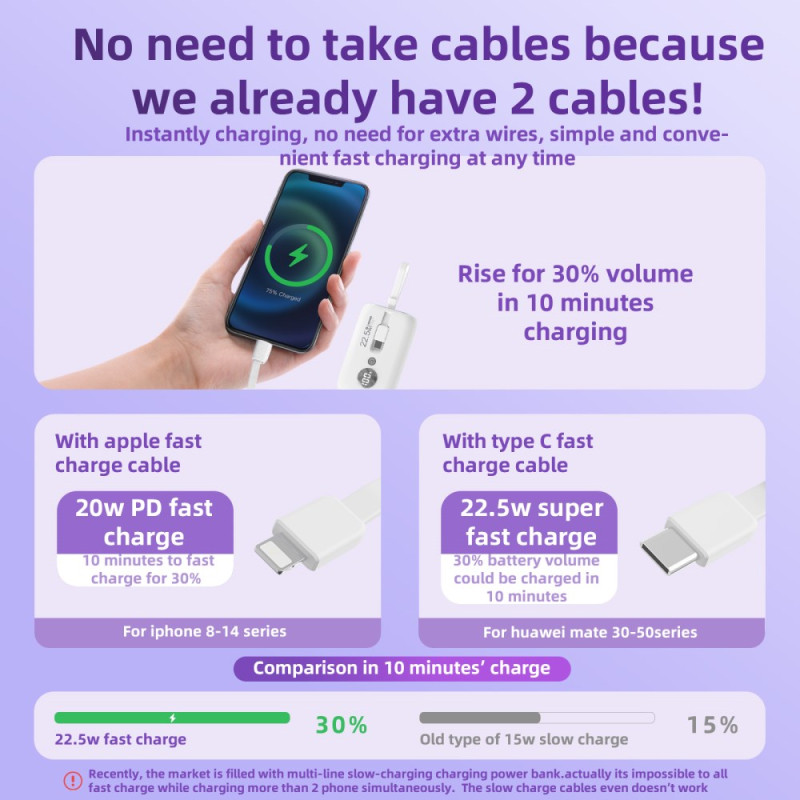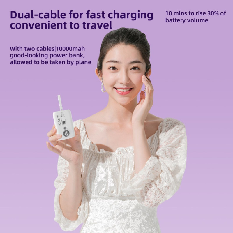 Avancerad värmekontroll och kabelintegrering omdefinierar snabbladdning i fickformat. Detta ROISKIN 10000mAh externa batteri är utformat för maximal bekvämlighet: det integrerar två kablar (Type-C och Lightning) som också fungerar som en handrem. Laddningseffekten når 22,5 W (via Type-C-kabeln), samtidigt som ett nyutvecklat chip håller en låg temperatur och bevarar batteriernas hälsa. Den intelligenta digitala displayen visar exakt hur mycket batteri som återstår, vilket ersätter indikatorlamporna. Den kompakta och lätta enheten är den perfekta följeslagaren för mobilitet.