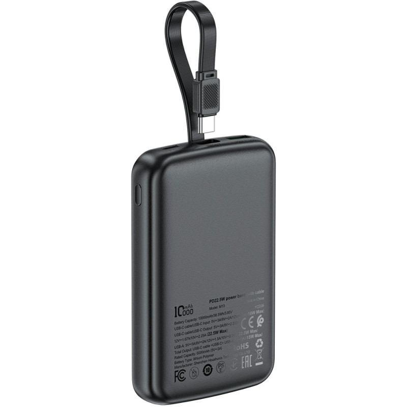 Detta ACEFAST 10000mAh externa batteri erbjuder bekväm autonomi samtidigt som det garanterar snabb laddning tack vare PD 22,5W-teknik som är kompatibel med flera protokoll. Den integrerade Type-C-kabeln förenklar användningen genom att eliminera behovet av att bära med sig en extra kabel. Den digitala displayen visar den exakta batterinivån för bekväm hantering. Den kompakta och lätta enheten är enkel att bära med sig. Den flamskyddade PC-designen och koboltcellerna garanterar ökad säkerhet och överensstämmelse med standarder för flygtransporter.