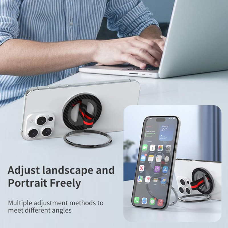 Upptäck vår MagSafe-kompatibla magnetiska telefonhållare med 360° rotation och elegant kolfiberstruktur. Vikbar, kompakt design för optimal bärbarhet. Perfekt för alla dina vardagsbehov!