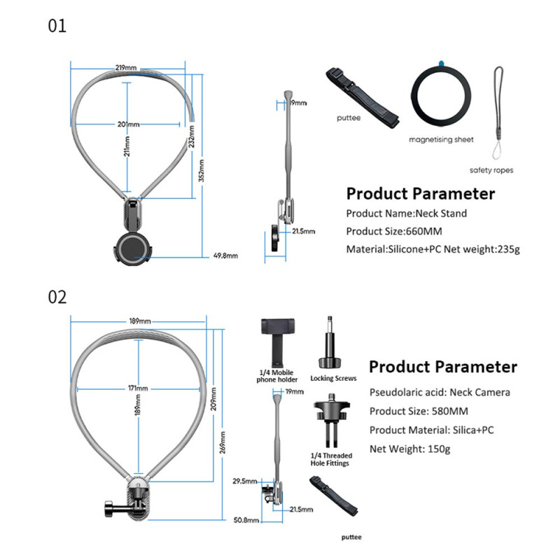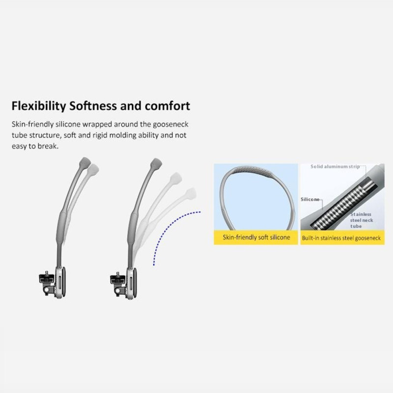 Den magnetiska telefonhållaren med flexibel hals är det perfekta verktyget för innehållsskapare, vloggare och streamare. Den ergonomiska designen omsluter nacken för en bekväm och stabil passform, även vid långvarig användning. Det kraftfulla magnetsystemet säkerställer omedelbar fastsättning och smidig 360° rotation, perfekt för filmning från alla vinklar. Tillverkad av mjuk silikon och rostfritt stål, vilket ger hållbarhet och flexibilitet utan risk för att gå sönder. Den kan bäras runt halsen eller placeras på ett bord, vilket gör den idealisk för alla inspelnings- eller visningsscenarier.