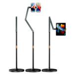 Boneruy golvstativ är den perfekta lösningen för streaming, online-lektioner eller videovisning i full frihet. Dess 360° roterande design och justerbara höjd från 51 till 101 cm ger optimal användarkomfort, oavsett om du ligger ner, sitter eller står. Den är tillverkad av aluminium , kolstål, plast och silikon för att garantera stabilitet och hållbarhet. Den justerbara armen kan hålla två telefoner samtidigt eller en surfplatta, i antingen horisontellt eller vertikalt läge. Den är vikbar och elegant och passar alla miljöer och vardagliga användningsområden.