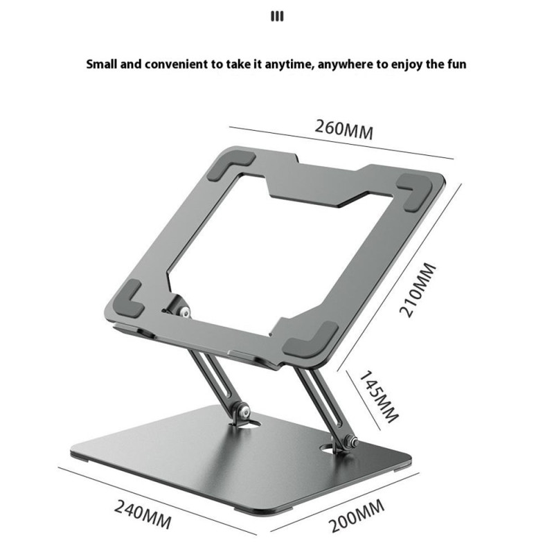 Detta hopfällbara bärbar dator -stativ erbjuder optimal ergonomi tack vare det steglöst justerbara höjdsystemet, som gör att du kan placera din enhet i perfekt vinkel. Det är tillverkat av robust kolstål med halkfria silikonzoner, vilket ger perfekt stabilitet och klarar en belastning på upp till 10 kg. Dess slitsade design främjar utmärkt luftcirkulation, vilket hjälper till att förhindra överhettning vid långvarig användning. Den är vikbar och lätt att bära, passar lika bra hemma som på kontoret och passar alla enheter upp till 17,3".