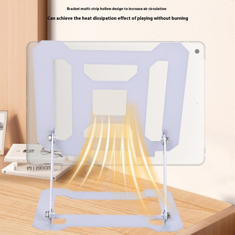 Det justerbara fällbara skrivbordsstativet erbjuder perfekt ergonomi för att förbättra din arbetskomfort. Tack vare det kontinuerliga justeringssystemet kan du placera din bärbara dator i perfekt höjd och vinkel. Den perforerade designen säkerställer optimal luftcirkulation, vilket begränsar överhettning vid långvarig användning. Tillverkad av robust kolstål med halkfria silikonfötter, garanterar stabilitet utan att vingla och stöder upp till 5 kg. Den är vikbar och lätt att transportera och passar en mängd olika enheter upp till 17,3".
